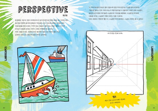 만화를 통해 그리기의 재미를 알았다면 다음은 남자아이들이 좋아하는 소재인 로봇, 자동차, 로켓, 각종 머신 등을 대상으로 격자선 위에 그리기, 움직임과 질감 좀 더 발전된 표현법을 배울 수 있습니다. 미술의 기본이라 할 수 있는 풍경 그리기도 빼놓을 수 없죠. 풍경 그리기의 중요한 요소들을 알아보고 다양한 경치 그리기 기법에 대해서도 단계별로 자세히 설명되어 있어요.