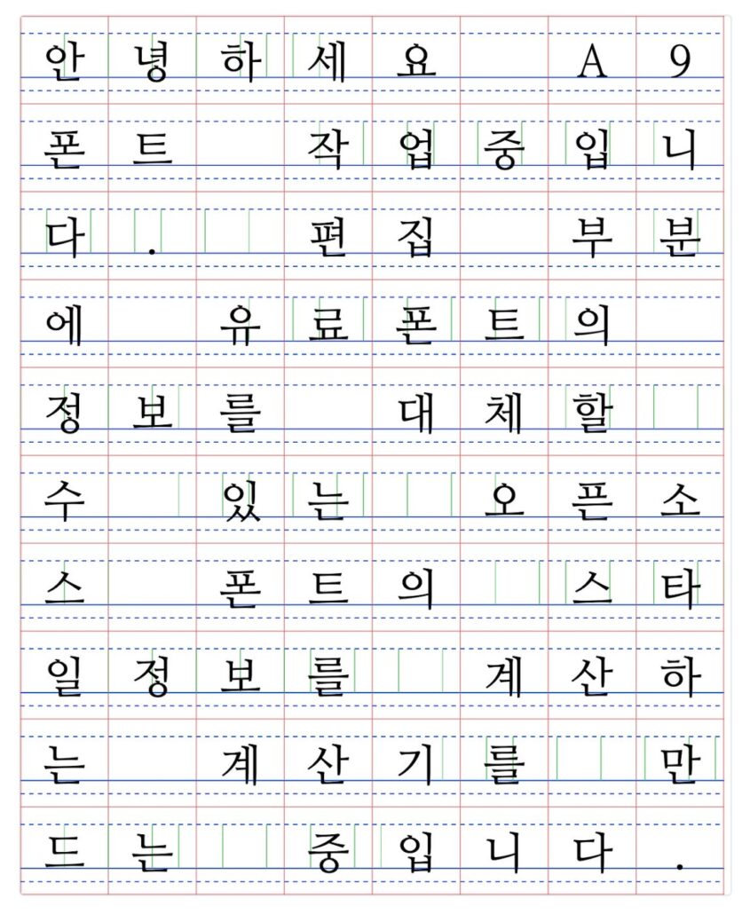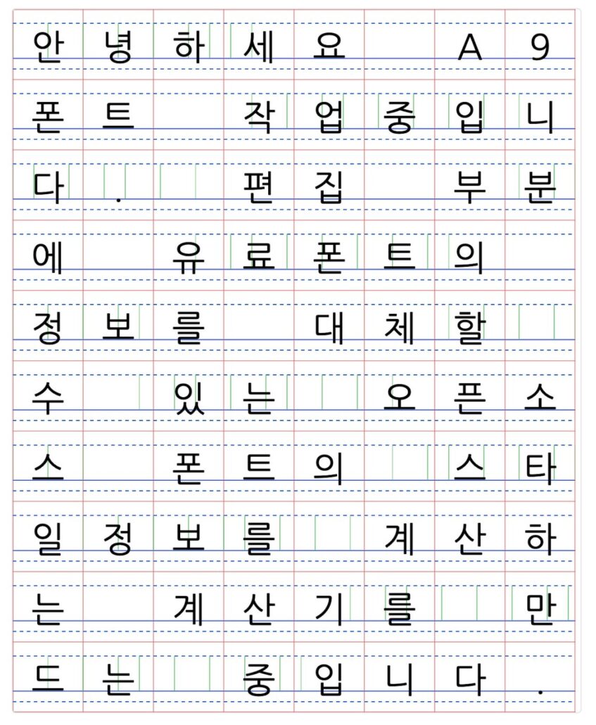 무료폰트를 사용해도 동일한 결과가 나오게 하는 것이 목적이며 폰트를 수정하거나 바꾸는 일을 하는 것은 다른 문제이기 때문에 그냥 계산기 역할만 할 생각으로 제작중입니다.