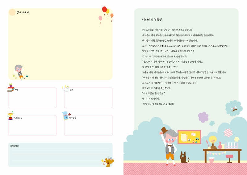 Story – 에디슨, 조앤 롤링 등 노력가들의 아름다운 성공 스토리를 읽어보고 꿈을 키워보세요. 마지막 달에는 자기가 꿈꾸는 미래의 성공 스토리를 직접 만들어보세요. 먼저 꿈꾸지 않으면 어떤 것도 이룰 수 없답니다.