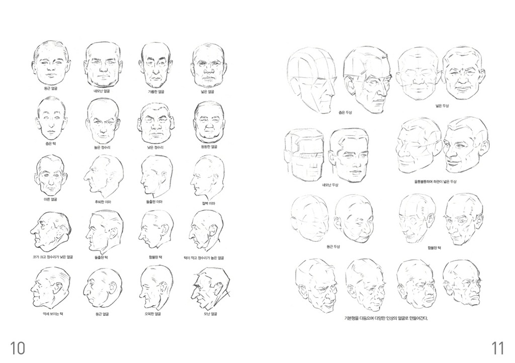 이런 요소를 조합하면 수만 가지 유형의 두상을 그리는 것이 가능해진다.