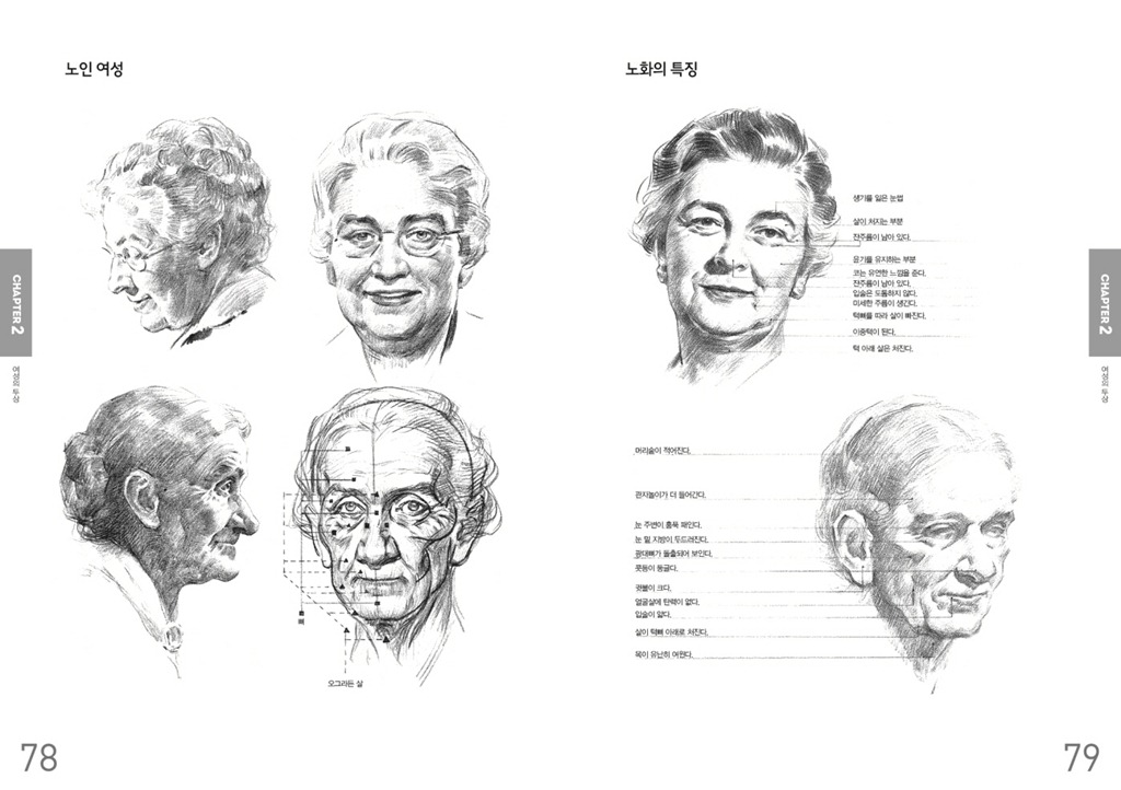 사람들의 얼굴이 저마다 다르다는 사실 자체는 매우 흥미로운 일이지만 그림으로 표현하기에는 쉽지가 않다. 동양과 서양, 남자와 여자, 아이와 청소년, 성인과 노인 등 인종과 성별, 그리고 나이에 따라 인간의 얼굴은 달라지기 때문이다. 만일 당신이 두상을 제대로 그릴 줄만 안다면 인체 표현의 80%를 습득한 것이라 할 수 있다.