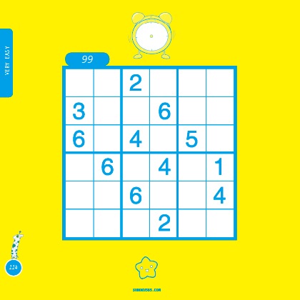 초급에서는 2X3 스도쿠 100문제와 3X3 스도쿠 100문제 총 200 문제는 두뇌건강을 위해 하루 10분~15분 짧은 시간 내에 문제를 풀어볼 수 있는 형식으로 구성했으며 논리적 사고력, 집중력, 기억력을 키울 수 있는 난이도로 처음 스도쿠를 해보는 어린이들을 위해 만들었습니다.