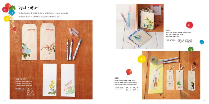 요즘 같은 디지털 시대일수록 오히려 다양한 아날로그 아이템이 사랑을 받곤 합니다. 안부를 묻는 문자 메시지보단 손으로 정성스럽게 쓴 편지 한 장이 더욱 가슴에 와 닿는 것처럼 말이죠. 만일 붓으로 그림을 그려 놓고 축하 인사를 쓴다면 어떨까요? 다이어리나 편지 봉투에 붓으로 직접 그린 간단한 그림만 넣어도 분위기는 확 달라집니다. 마음이야 굴뚝같아도 먹이며 벼루 등을 갖춰 놓고 그림을 그리기가 쉽냐고요? 이럴 때 아주 유용한 것이 바로 붓 펜입니다. 흔히 붓 펜 이라고 하면 예식장이나 전시회 등에서 방명록을 쓸 때나 사용하는 필기구라고 생각합니다. 그러나 시중에는 먹색 말고도 색색의 붓 펜이 많이 나와 있습니다. 일러스트를 그리는 데 이보다 더 간편한 도구가 어디 있을까 싶을 정도입니다.