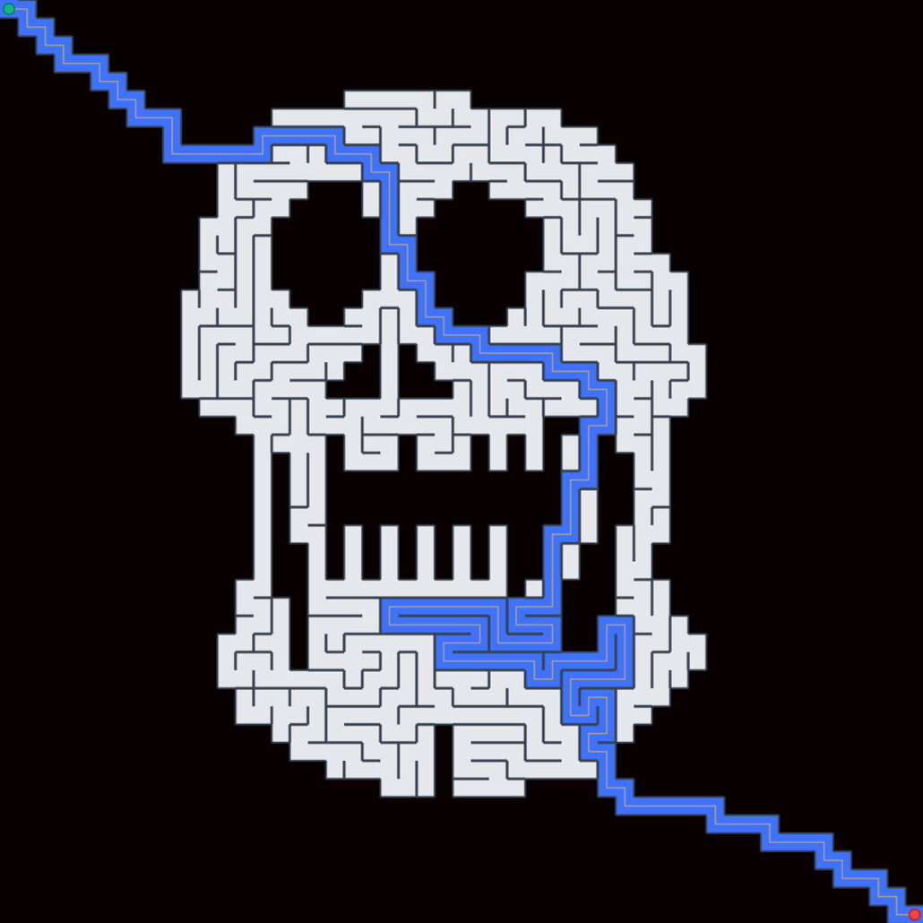 미로찾기의 빈 공간을 다 채우는 미로찾기가 될테니까 아주 복잡하고 큰 그림도 그릴 수 있게 됩니다.