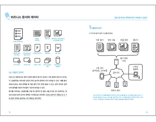 이 책은 업무와 학습에서 가장 기본이 되는 메모와 문서, 각종 기록을 즐겁고 유쾌하게 만들기 위한 기술을 소개하고 있다. 보고서와 기획안, 노트 필기, 회의의 기록들을 도해와 이모티콘, 픽토그램 등의 그림문자를 적절하게 섞어서 기록하면, 보다 쉽게 내용을 파악할 수 있고 효율적으로 머릿속에 저장된다. 또한 누락된 부분이나 모순점을 발견하는 것도 훨씬 쉬워진다.