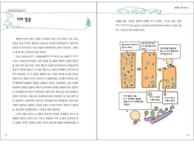 특히 이 책은 전개 방식이 남달라 백과사전식으로 지식과 정보를 나열하지 않는다. 기존 지식에 의문을 제기하고, 다양한 자료를 바탕으로 여러 생물학 이론을 대입, 추론하고 결과를 이끌어내는 식이다. 이런 과정을 통해 저자는 우리의 상식을 무너뜨리고 진화에 대한 새로운 사실을 알려준다. 그렇다고 이 책을 따분한 학술서로 오해하지는 말자. <생물선생님도 몰래 보는 진화론>은 각종 그림과 사진을 풍부하게 활용해 생물의 미스터리를 재미있게 풀어낸 책이다.