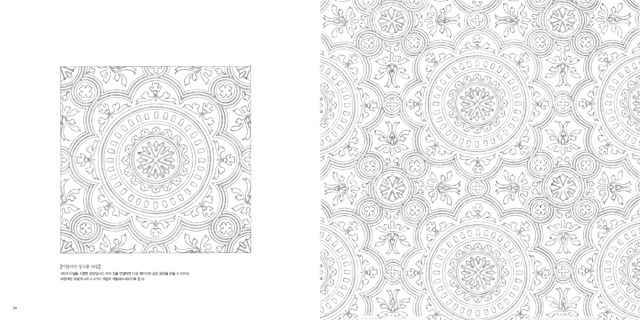 고대부터 내려오는 전통적인 무늬들, 유럽풍 문양에서 중근동의 개성적인 문양 그리고 아시아 특유의 전통 문양까지 오랜 역사를 지닌 나라들의 아름다운 전통 문양을 오롯이 한 권에 담았습니다. 문양의 종류가 워낙 다양하고 정밀하기 때문에 색칠하는 재미를 단단히 맛볼 수 있을 것입니다. 책 서두에는 각 문양에 맞는 색칠법과 배색 방법 등을 안내해 누구나 쉽게 도전할 수 있도록 구성했습니다. 또한 각 페이지에는 문양에 대한 해설이 있어 그 모양의 의미와 역사적 배경 등을 이해할 수 있도록 배려했습니다.