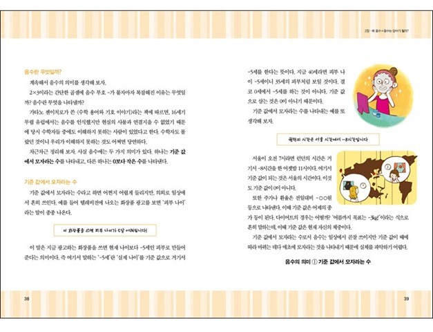 이 책은 학교에서 잠깐 훑고 지나가는, 아니면 수학선생님이 가르쳐주지 않고 생략하고 넘어간 수학의 원리를 아주 쉽게 일상적인 사례들로 해설해 주는 책이다. 먼저 분수의 나눗셈을 할 때 왜 나눗셈을 반대로 뒤집어서 곱해주는가, 음수에다 음수를 곱하면 어째서 양수가 되는가와 같은 기초 개념을 짚어주고 더 나아가 문장제 문제들을 풀어내는 데 필요한 수학적 사고와 요령을 알려준다.