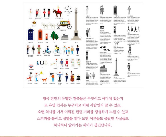 오랜 역사를 거쳐 이뤄진 런던 거리를 생생하게 느낄 수 있고 스티커를 붙이고 설명을 읽다 보면 어른들도 몰랐던 사실들도 하나하나 알아가는 재미가 생긴답니다.