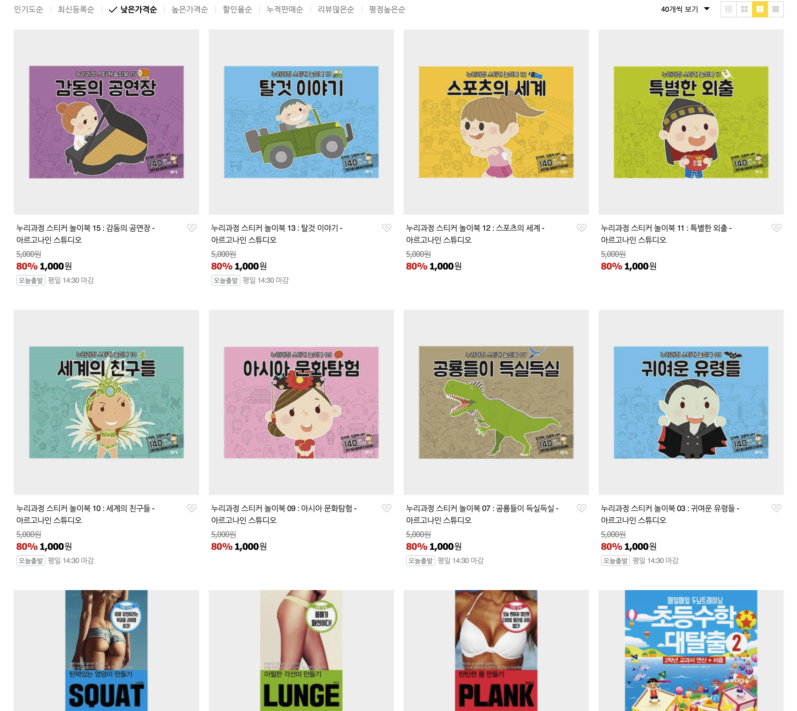 스티커책 이건 뭐건 다 알리, 테무 다이소보다 더 싸게 책을 판매합니다. 1000원부터 기존 가격을 80% 정도는 기본이 된 유아, 아동 책을 정리합니다. 창고비를 더 감당 못하겠습니다.