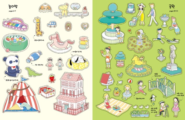 기존 스티커북들은 일러스트가 평면적이고 단순해 아이들이 금방 싫증을 내기 마련이에요. 하지만 <인형의 집 스티커북>, <인형의 마을 스티커북 시리즈>는 배경과 스티커를 정교하고 사실적으로 표현해 정말 인형의 세계에 온 것 같은 기분에 빠져들게 된답니다. 여기에 화려함과 고급스러움이 더해져 아이들이 더욱 흥미를 느끼고 스티커 놀이를 즐길 수 있어요. 또한 공간 감각을 익히기에도 좋아요.