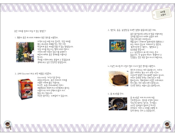 이런 이유로 <커피를 위한 넓고 얕은 지식>은 커피 전문서적은 아니다. 어디까지나 커피 애호가 시각으로 바라본 커피 예찬론이며 애정을 듬뿍 담은 커피 잡학사전에 가깝다. 때문에 일반 독자들이 부담 없이 책을 펼칠 수 있을 것이다. 게다가 이를 만화로 담아냈으니 어찌 즐겁지 않을까. 한 알의 커피콩이 어떻게 향기로운 커피로 탄생하는지를 재치 넘치는 입담과 그림으로 표현한 이 책을 보다보면 아마도 한 잔의 커피가 간절히 생각날지도 모르겠다.