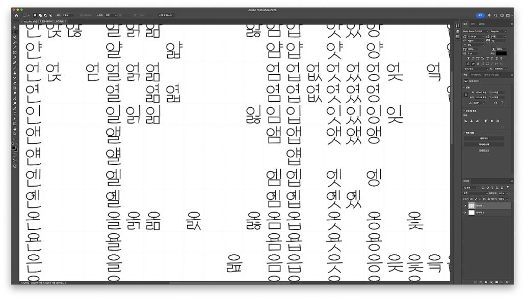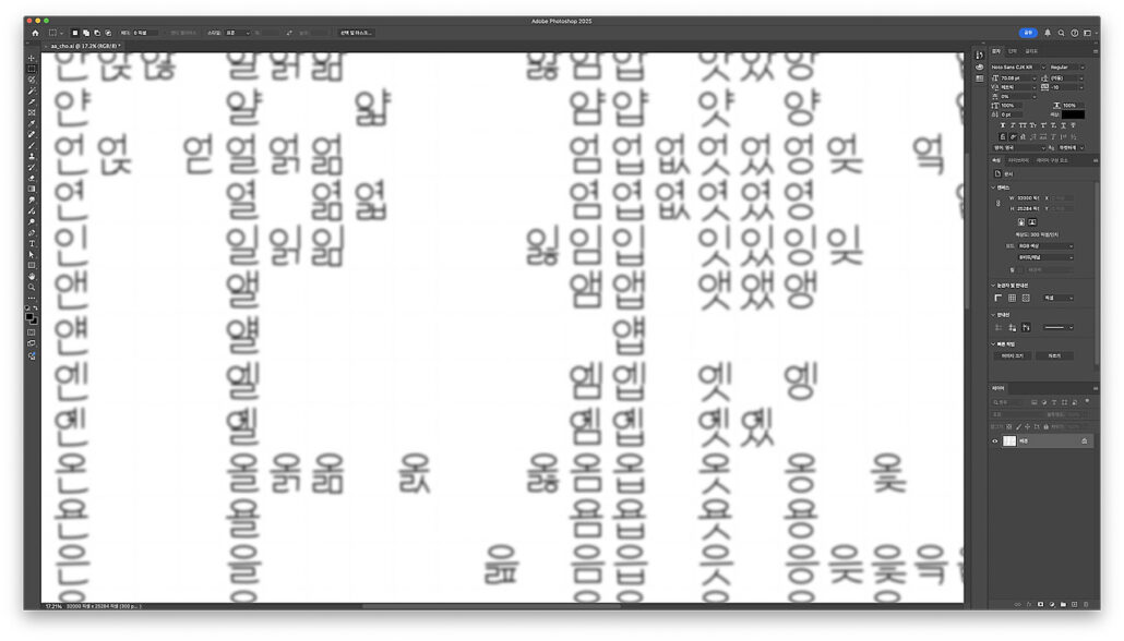 포토샵으로 한글 2560자 완성형 폰트의 느낌을 바꿔봤습니다.