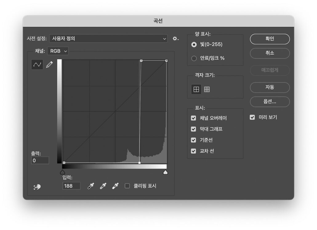 이 글자 테이블을 가우시안블러로 흐리게 만들고 이미지를 곡선으로 블러처리된 부분에서 회색을 제거하는 값을 정리해서