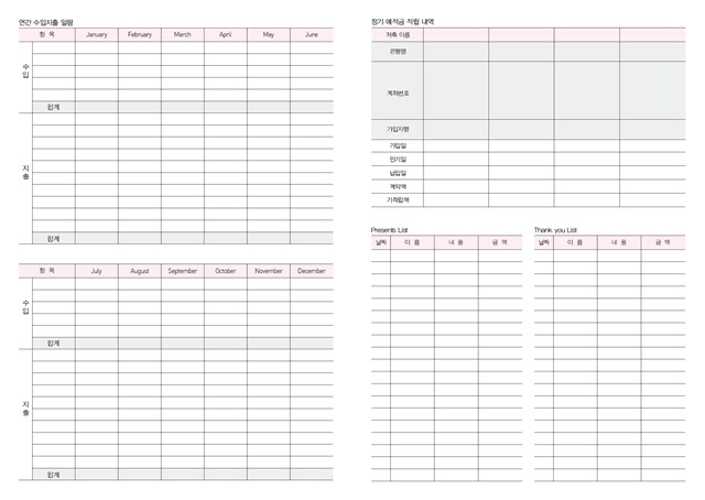 ■ 연간 수입지출 일람/정기예적금 적립 내역/보낸 선물 리스트/받은 선물 리스트