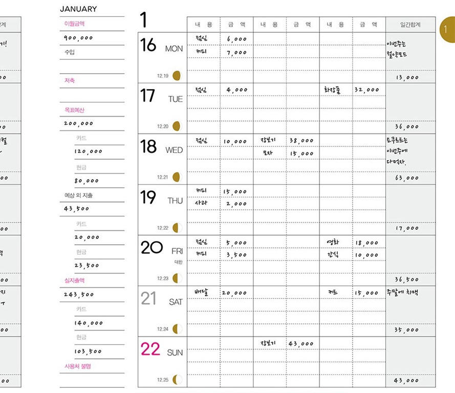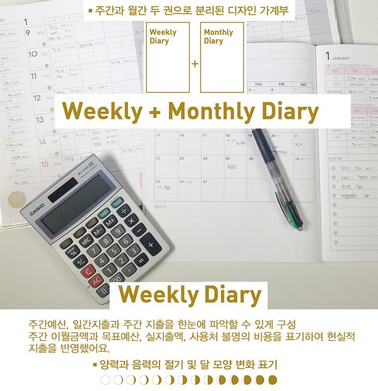 – 주간과 월간 두 권으로 분리된 디자인 가계부