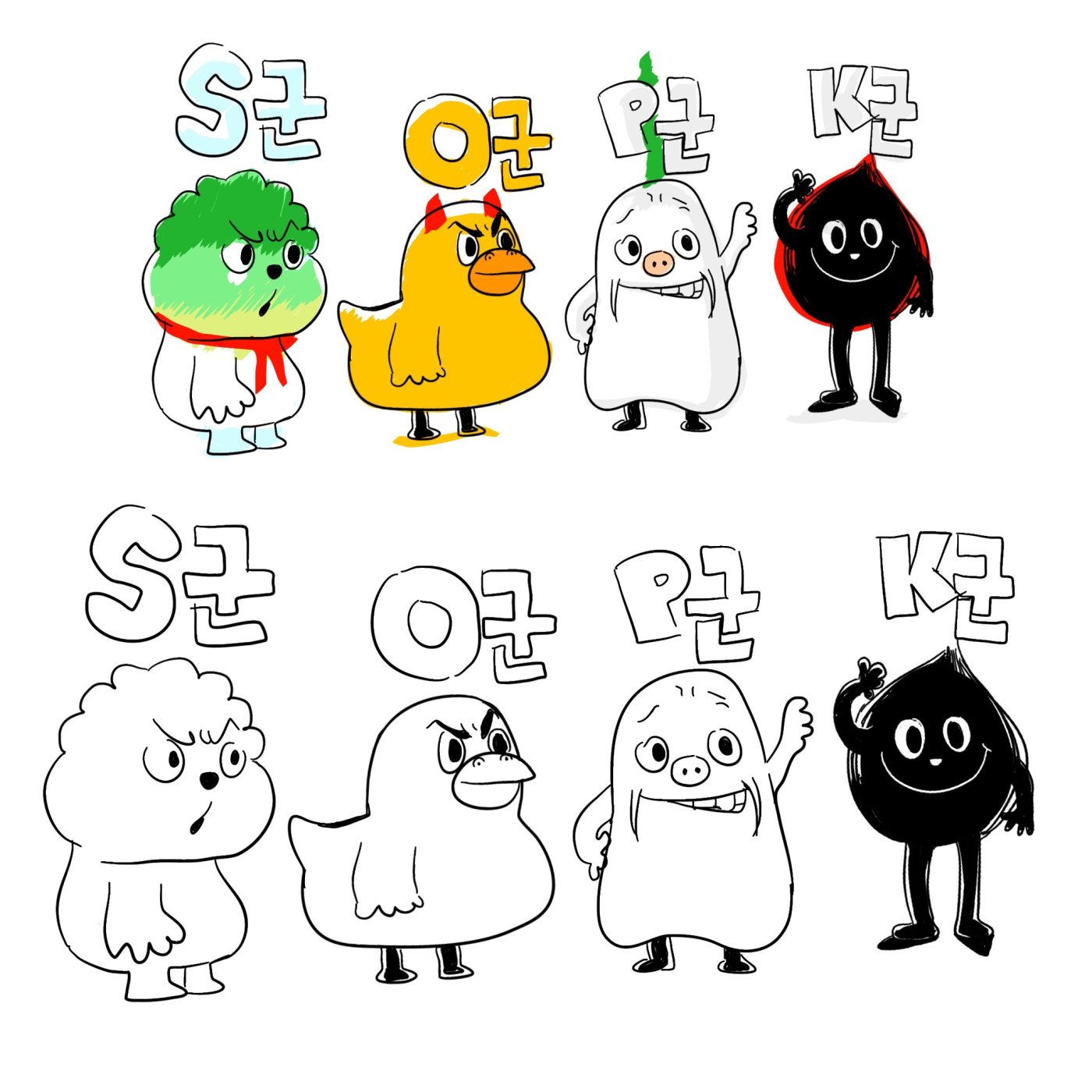 새로운 캐릭터를 만들어보고 있어요. 야채, 오리, 식재료를 캐릭터로 ^^