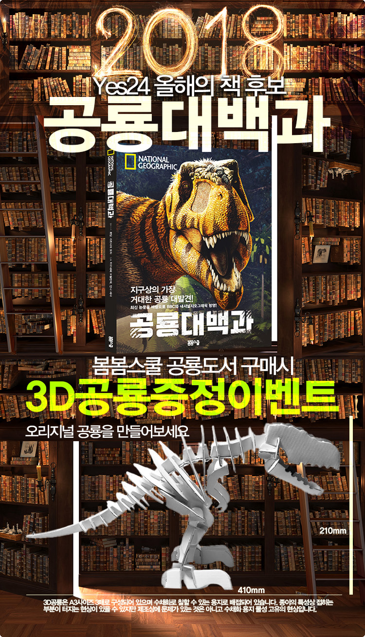 Yes24에 2018년 올해의 책 후보로 내셔널지오그래픽 공룡대백과가 선정되었습니다. 기념으로 원래 따로 책을 준비하던 페이퍼그래프트 다이노소어를 따로 수채화용 배접을 해서 증정하기로 했습니다.