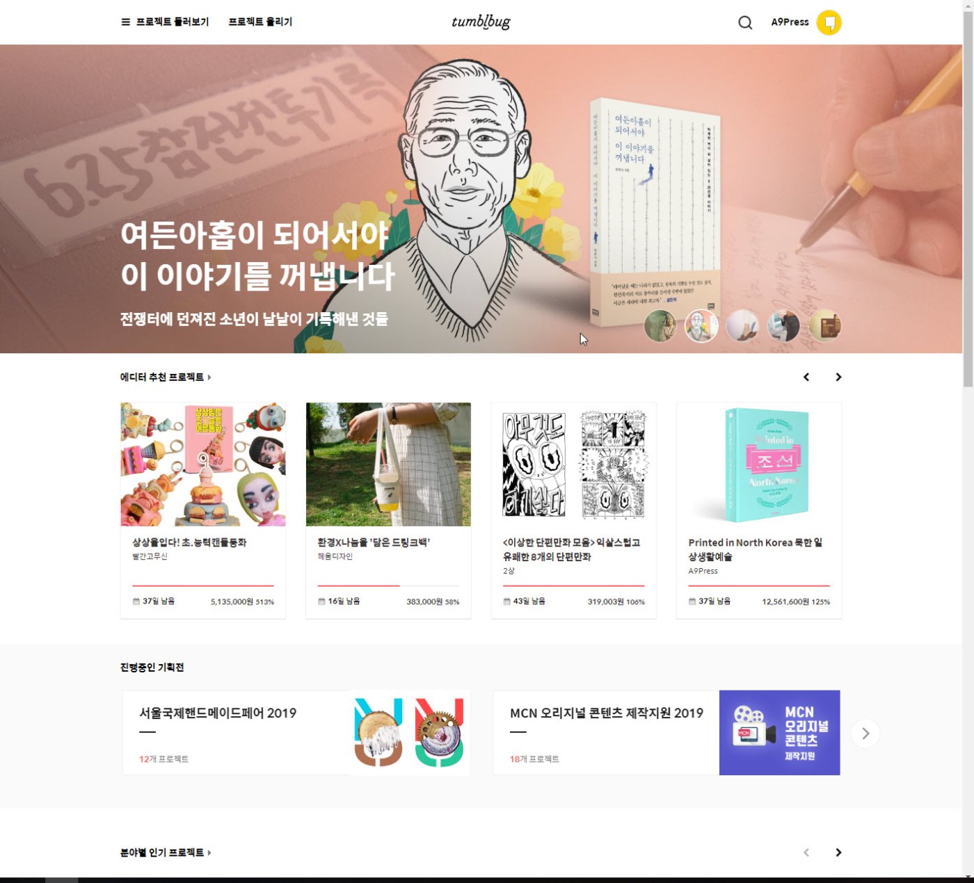 텀블벅 펀딩중인 프린티드 인 노스코리아가 에디터추천에 떴습니다. 가이드를 잘 지키지 못해서 한글 부분을 모두 삭제하고 다시 제작해서 수정등록했으며 1시부터 반영되어 노출되고 있습니다.