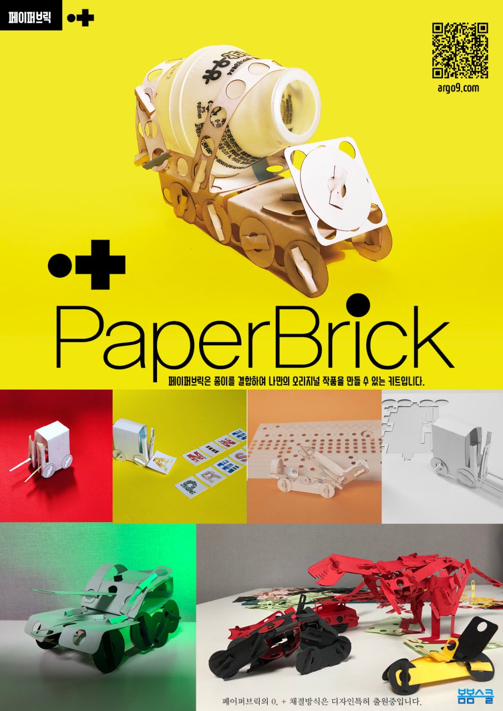 페이퍼브릭은 기본 O, +를채결하는 방식을 사용합니다. 자동차나 건축물, 동작이 가능한형태의 모형을 만들 수 있습니다. +의 -를 상단에 ^과 같은 모양으로 접고 O 구멍 안쪽을 펼쳐 요철로 결합합니다.