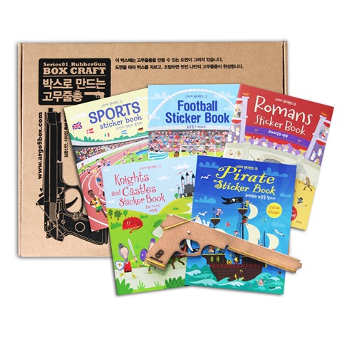 <스티커 원더랜드 액티비티 세트>는 박스로 만드는 고무줄총을 함께 증정합니다. 유년시절 누구나 한번쯤 가지고 놀았을 고무줄총. 박스로 만드는 고무줄총은 박스 종이와 고무줄을 이용해 간단히 만들어 놀 수 있는 아이디어 상품으로 <스티커 원더랜드 액티비티 세트>를 통해 만나보실 수 있습니다.