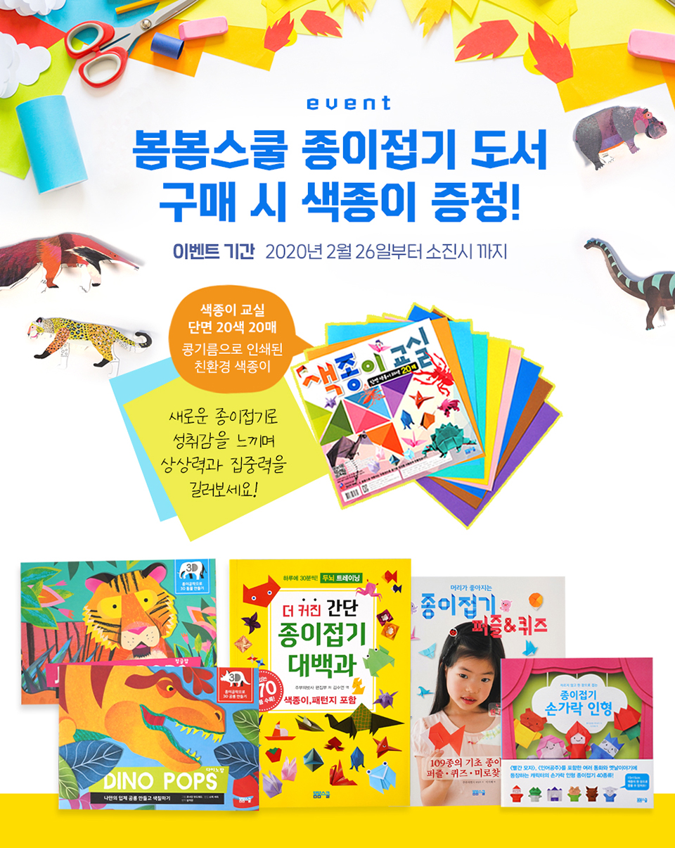 이벤트 도서 구매 시 단면20색 색종이(20매) 증정(포인트 차감) 이벤트가 3월말까지 진행됩니다.