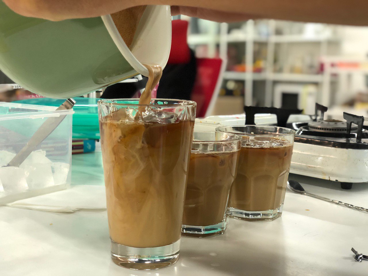 설탕이 흑설탕이라 하얀색 연유를 구연할 수 없었지만 냄비에 우유넣고 천천히 졸여 연유를 만들고 거기에 커피를 내려 아이스로 마셨는데 훌쩍 여름이 온 느낌을 받았습니다.