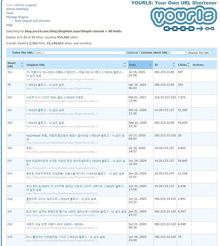 33개의 URL 중 1 에서 15 를 표시 하고 953,683 클릭을 계산합니다.