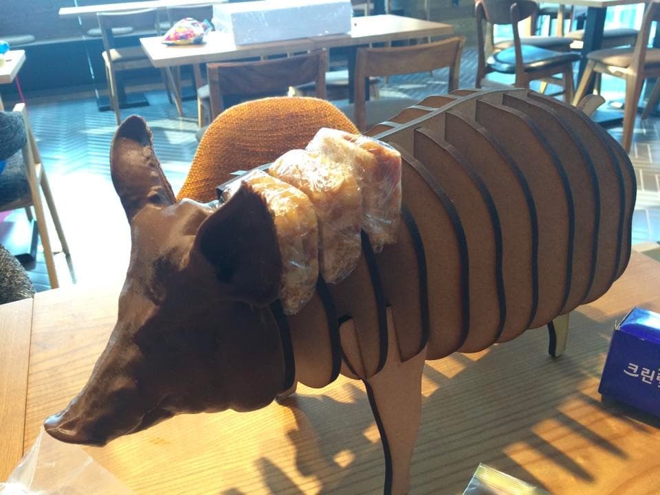 철판주물과 스텐레스로 만들어 불판으로 사용할 생각이었었음 실제 해당 부위의 고기를 넣어 한마리를 다 먹어볼 수 있게 하는 통구이 불판.