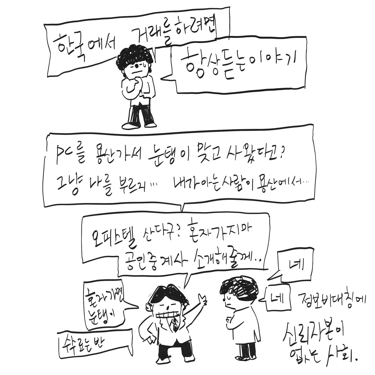 정보비대칭을 이용한 거래에 대응하기 위해 또 다른 방식으로 접근해야하는 전략이 필요하게 된다. 신뢰자본이 없는 사회로 가고있고 부끄러움도 없다.