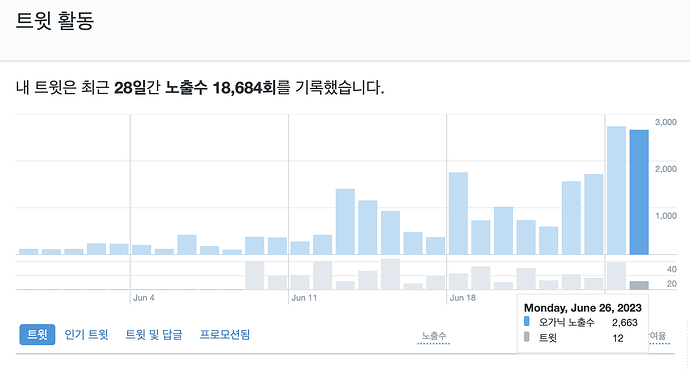 그냥 트위터 블루 구매한 이후 노출율이 확 올라감… 이런 이 맛에 돈쓰는거지…