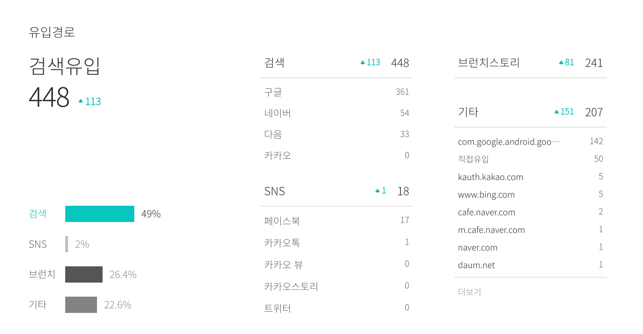 홈페이지에 브런치 링크를 달고난 다음에 브런치 유입경로 변화