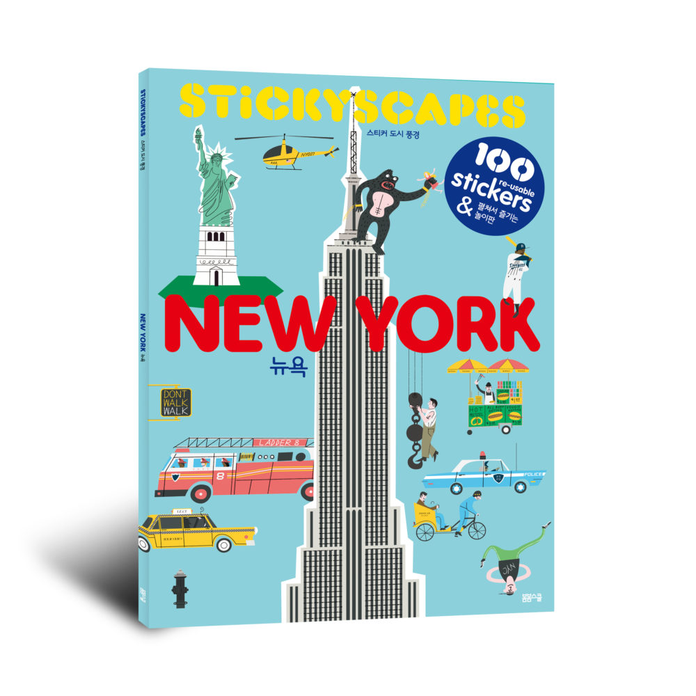 [스티커 도시 풍경-뉴욕 편]은 100여 종의 스티커로 길게 펼쳐지는 파노라마 형식의 페이퍼 보드에 현재의 뉴욕과 옛 뉴욕의 풍경을 꾸미는 스티커북입니다. 미국 뉴욕의 유명한 건축물은 무엇이고 어디에 있는지 또 유명 인사는 누구이고 어떤 사람인지 알 수 있습니다. 많은 사람들이 선망하는 뉴욕의 거리를 생생하게 느낄 수 있고 스티커를