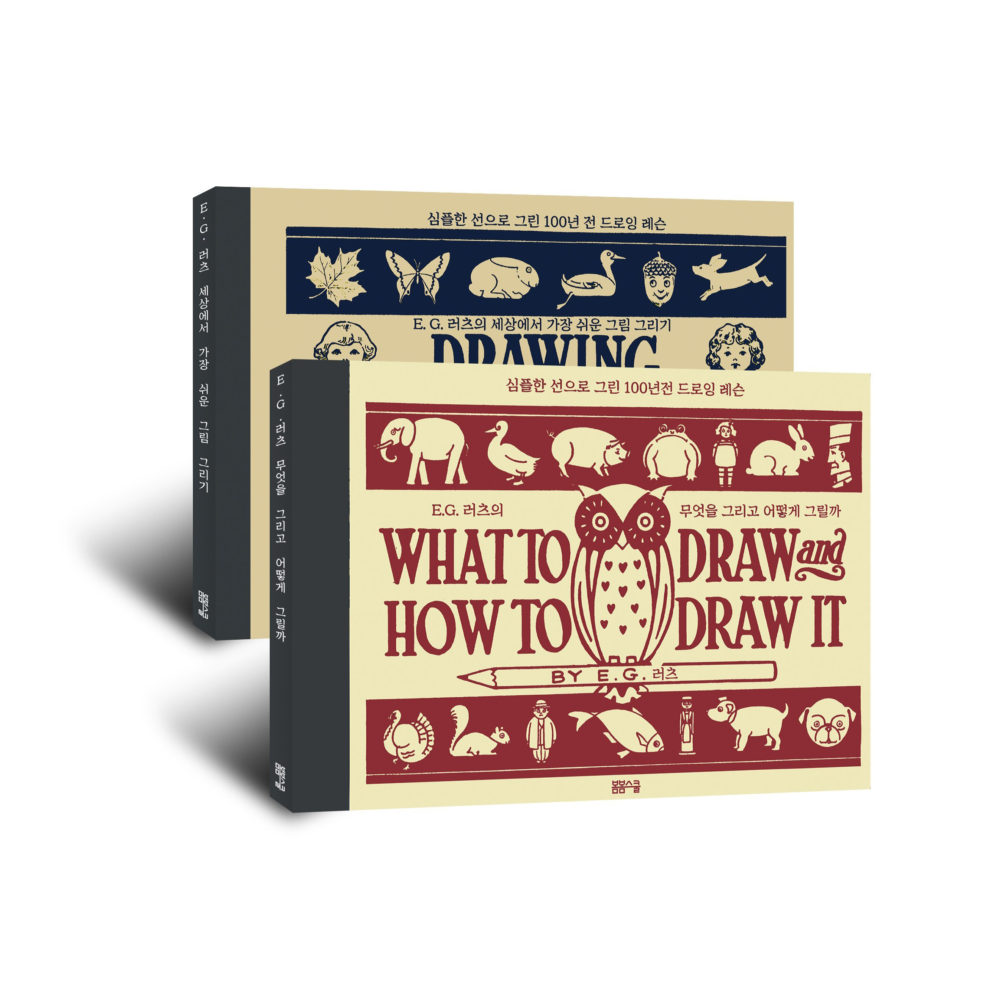 『무엇을 그리고 어떻게 그릴까』와 『세상에서 가장 쉬운 그림 그리기』는 100년 전 영국에서 발행된 후 오랫동안 절판되어 있던 세계 최초 삽화 교습서의 복각판입니다. 다양한 것을 의인화하여 단계별로 가르치는 기법이 E. G. 러츠의 장점입니다. 신문지면, 아동서의 삽화, 만화, 캐릭터를 제작하고 다양한 분야에서 활동한